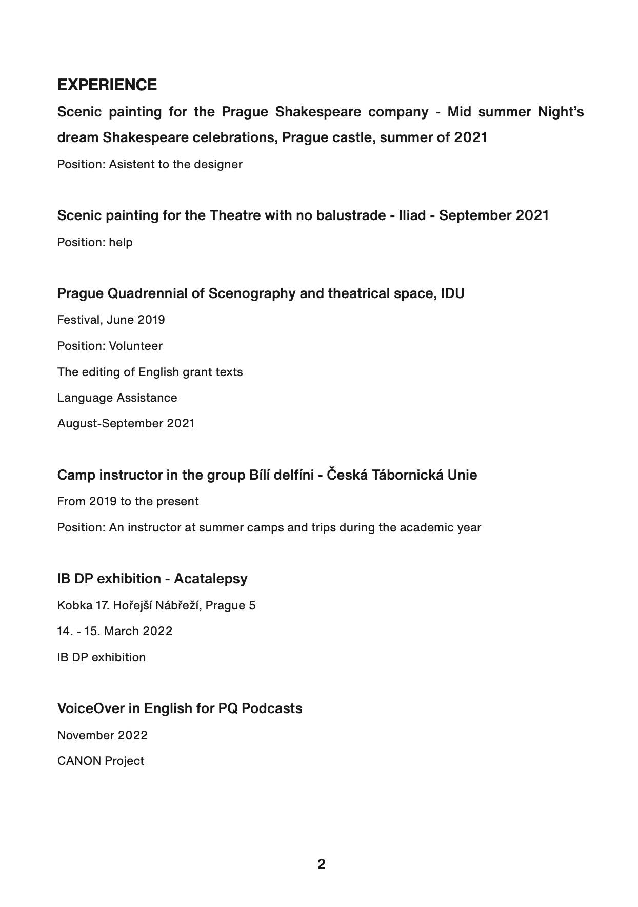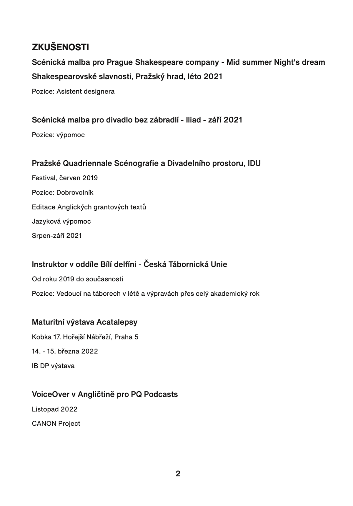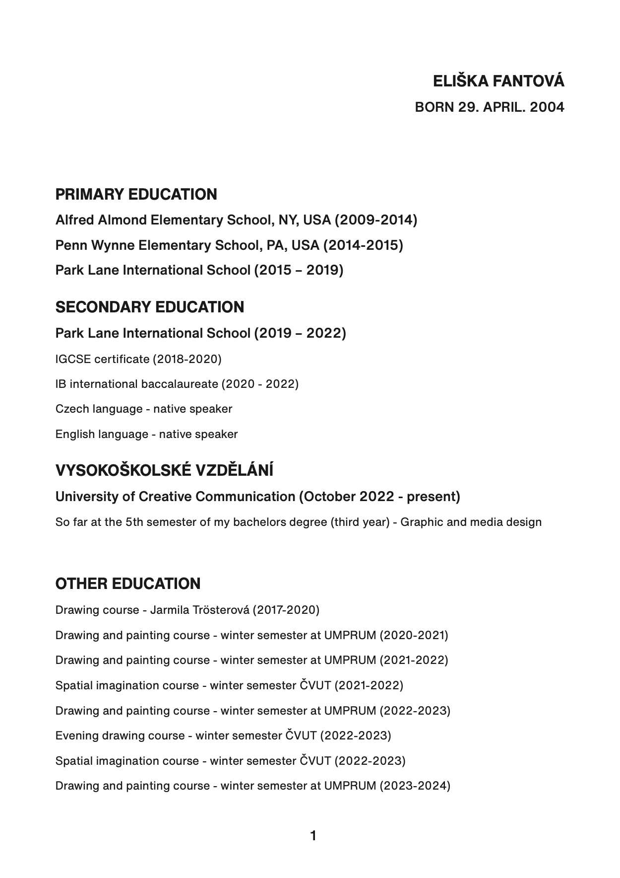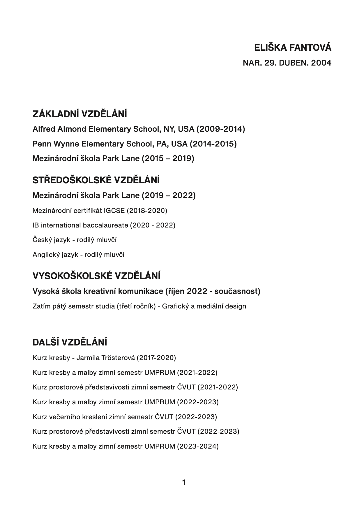 ŽIVOTOPIS V ČEŠTINĚ