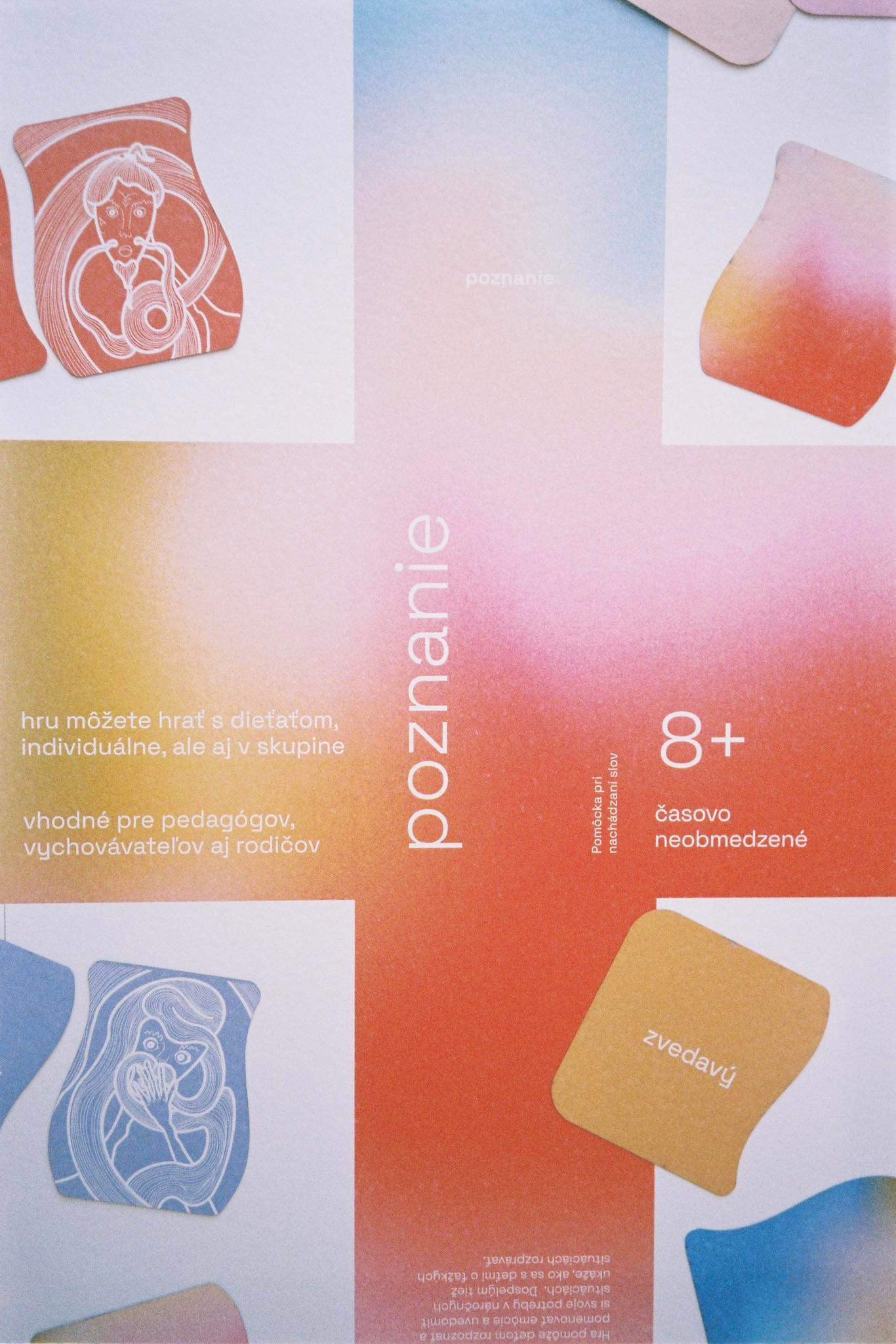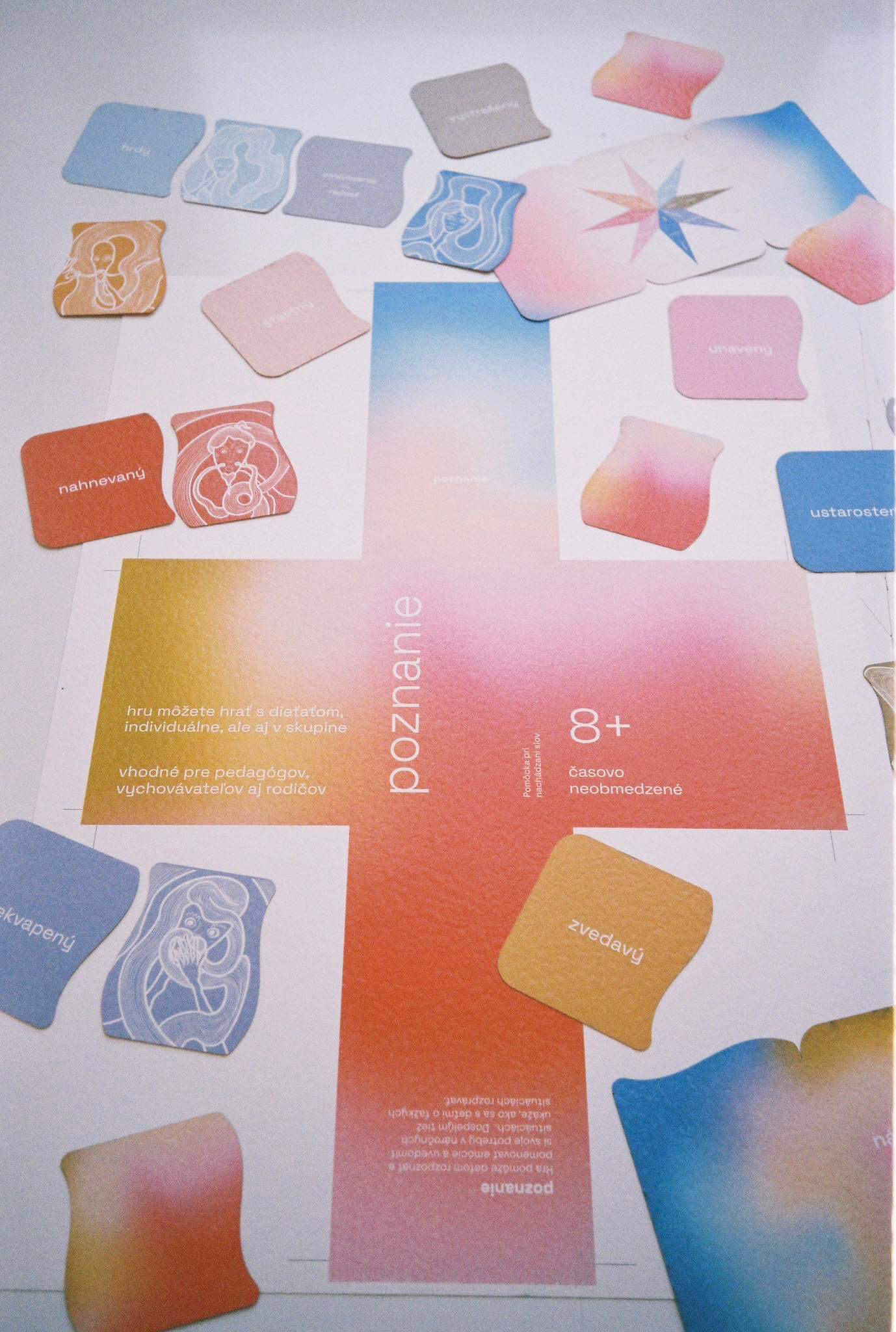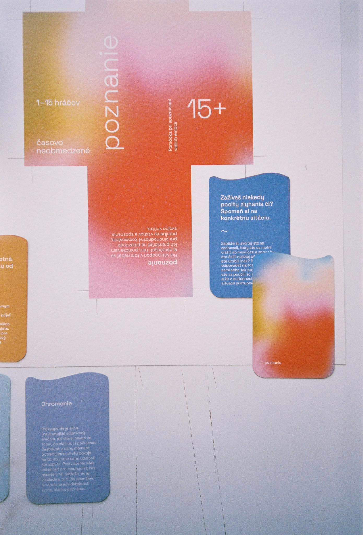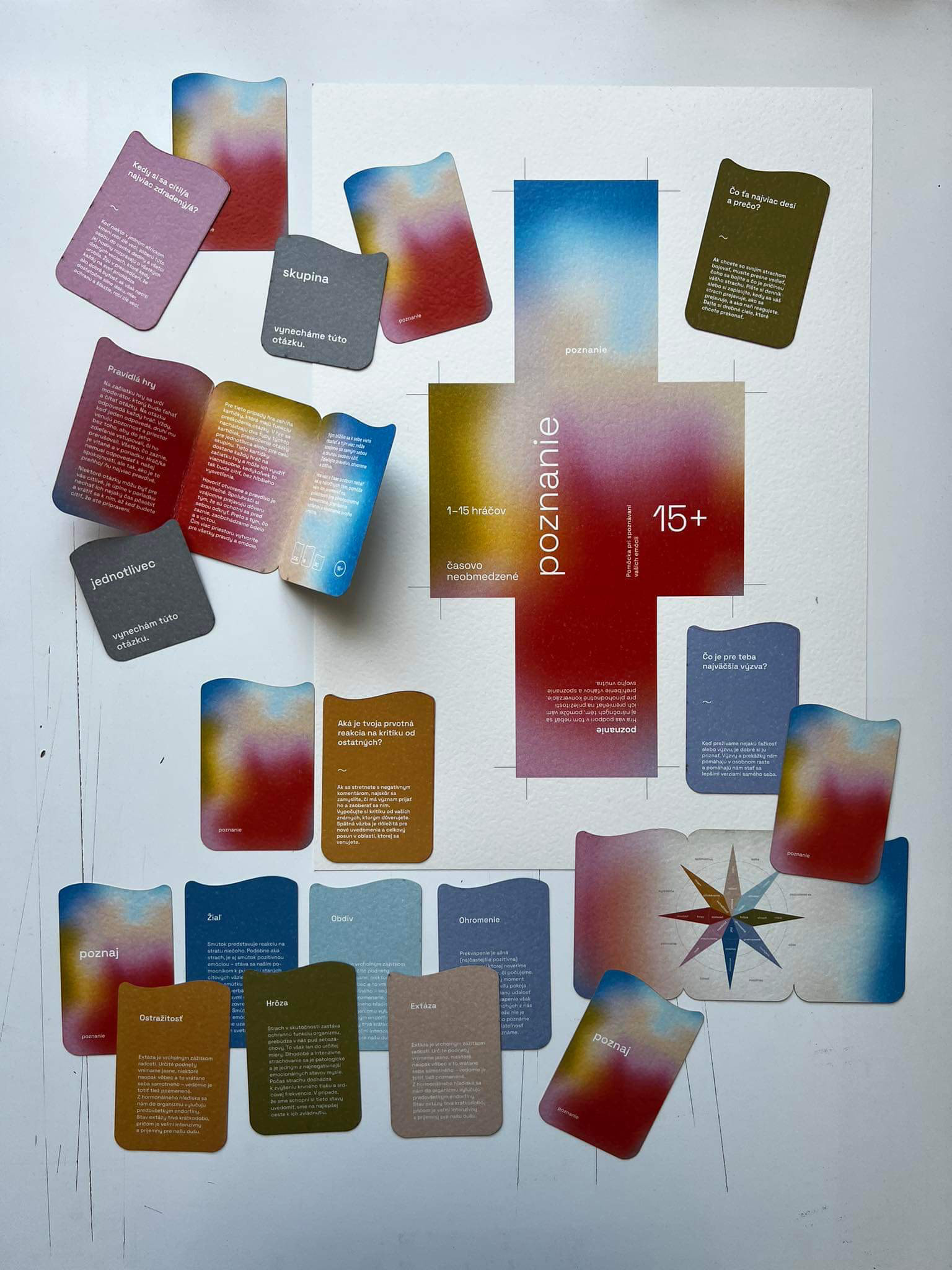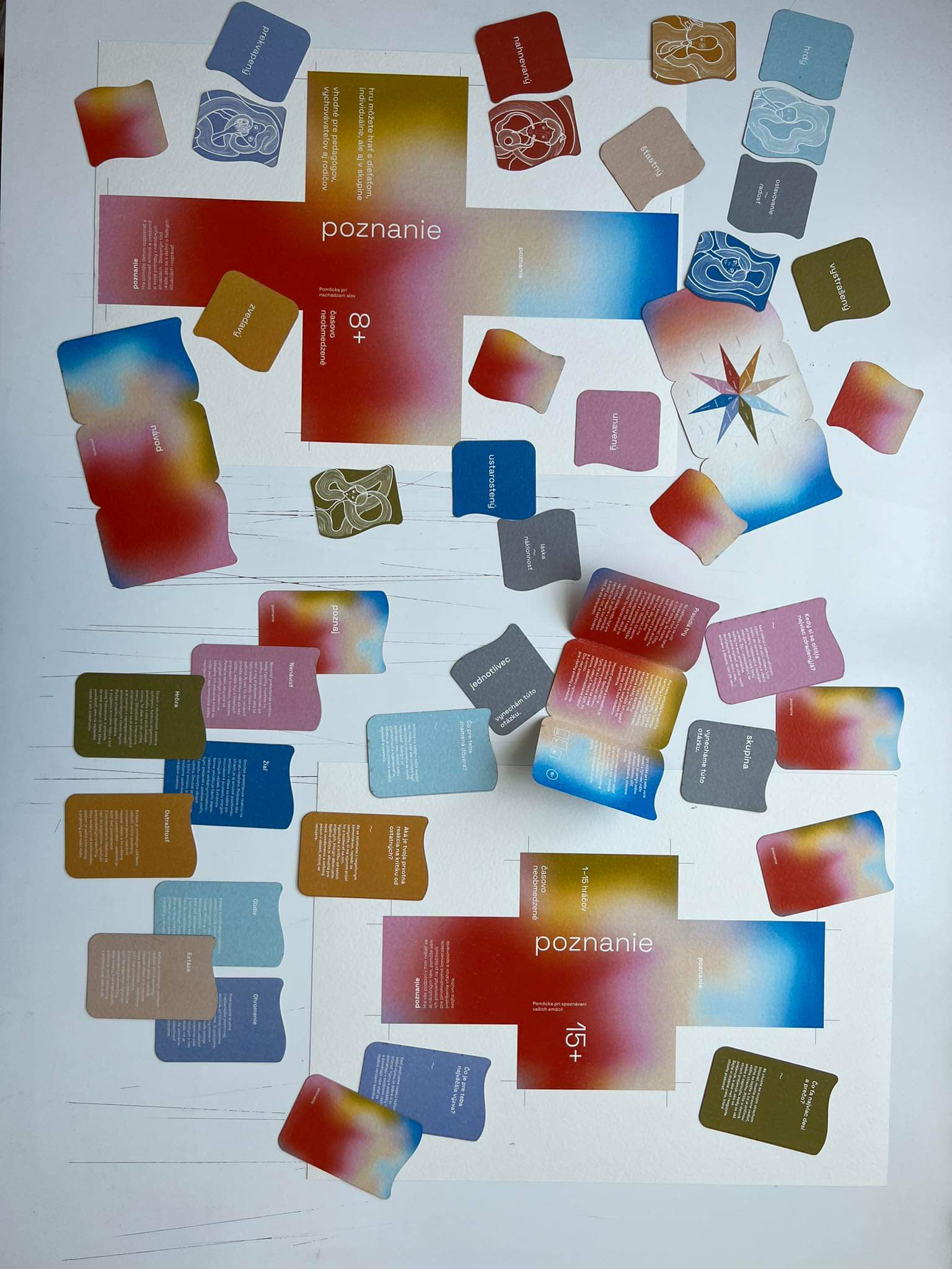The first assignment of our end of year project was to design a game. It could be a board game or a card game, whichever. We decided to create a card game, where its focus would be on personal development and recognition - the recognition of one's self and their emotions. We made two versions - 8+ and 15+. In collaboration with: Valerie Virtová, Alice Weinfurtová, Natálie Búzková, Sára Julie Frajtová and Klára Záskalanová.