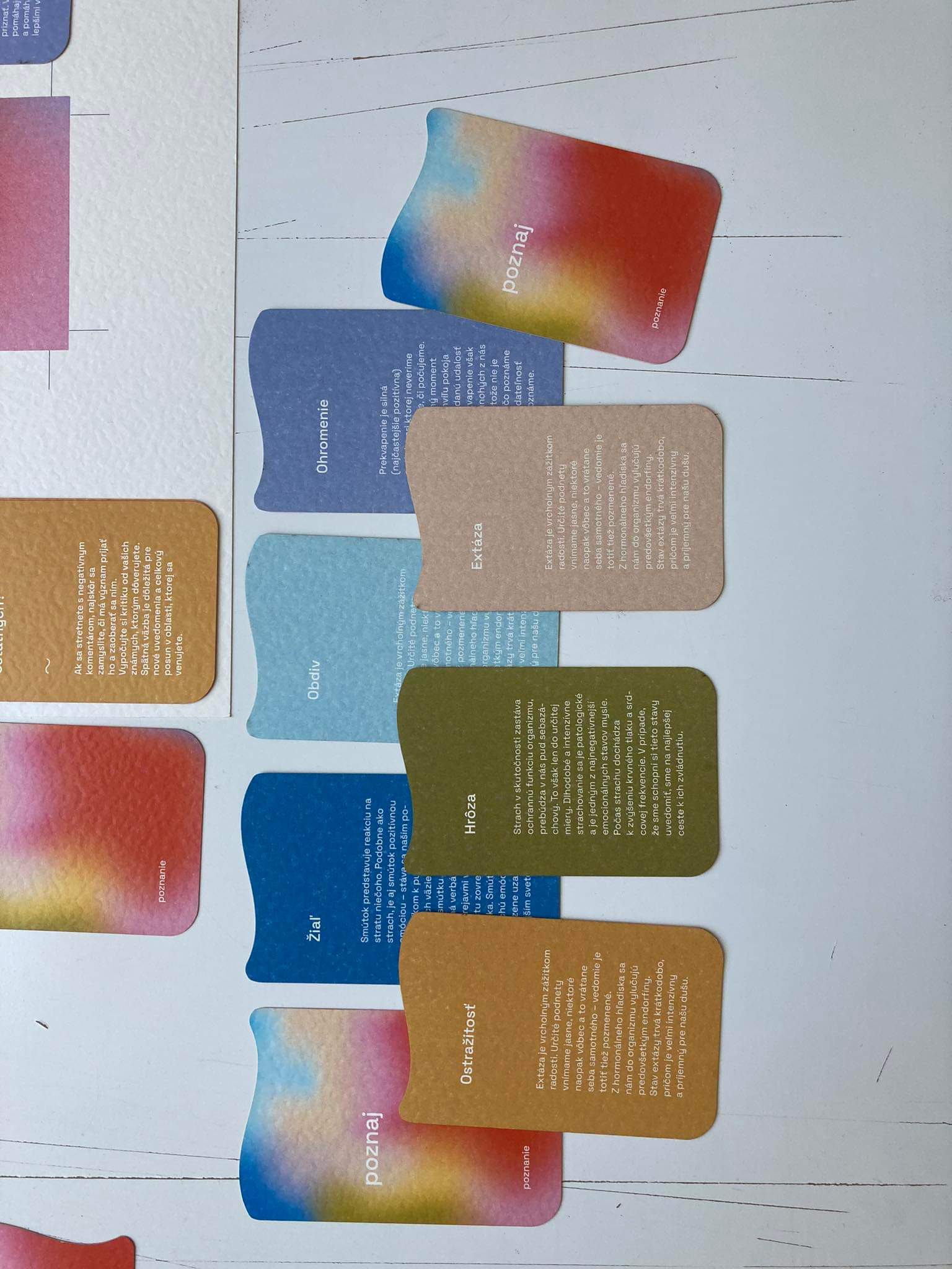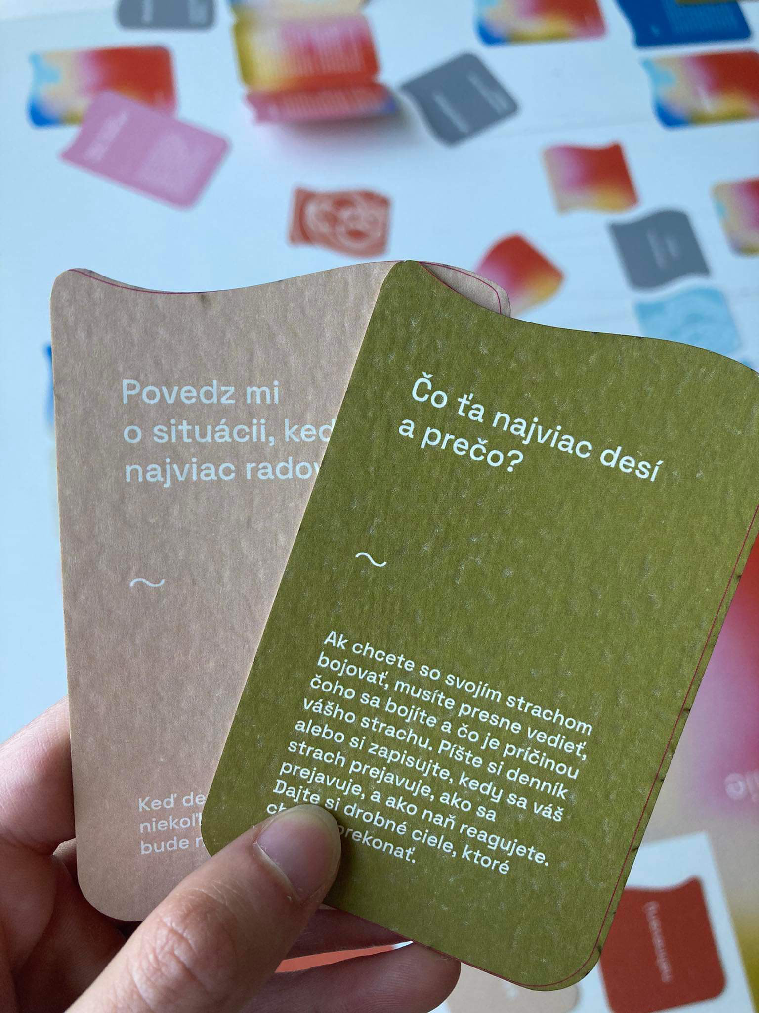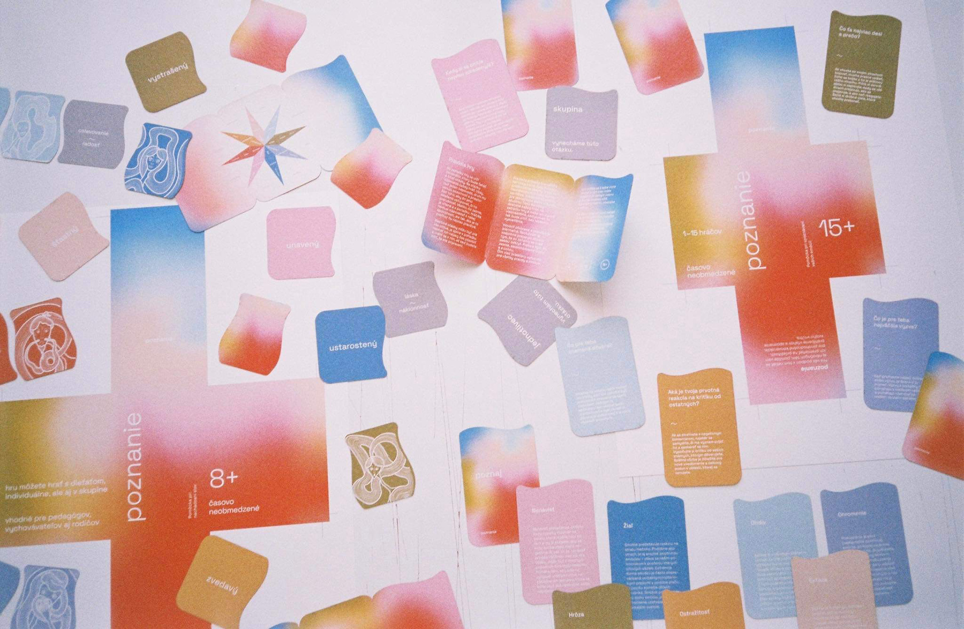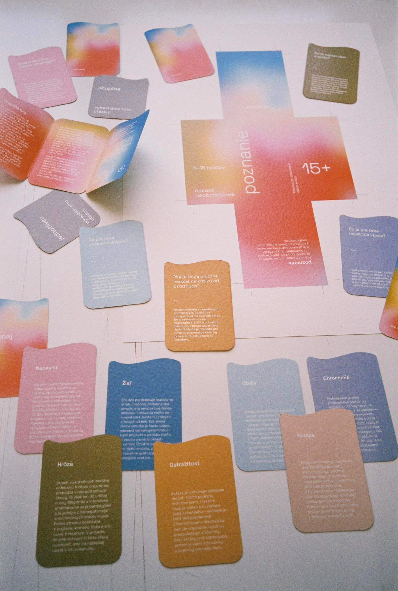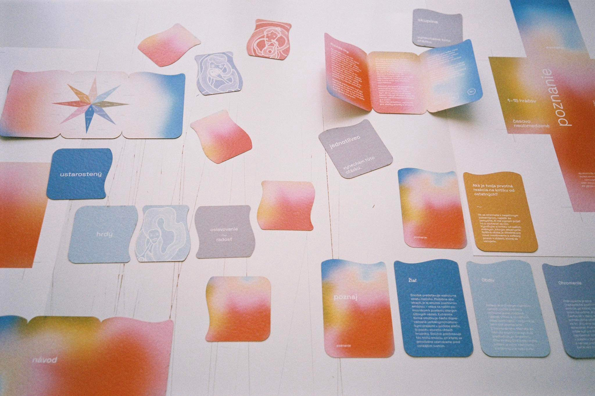 The first assignment of our end of year project was to design a game. It could be a board game or a card game, whichever. We decided to create a card game, where its focus would be on personal development and recognition - the recognition of one's self and their emotions. We made two versions - 8+ and 15+. In collaboration with: Valerie Virtová, Alice Weinfurtová, Natálie Búzková, Sára Julie Frajtová and Klára Záskalanová.