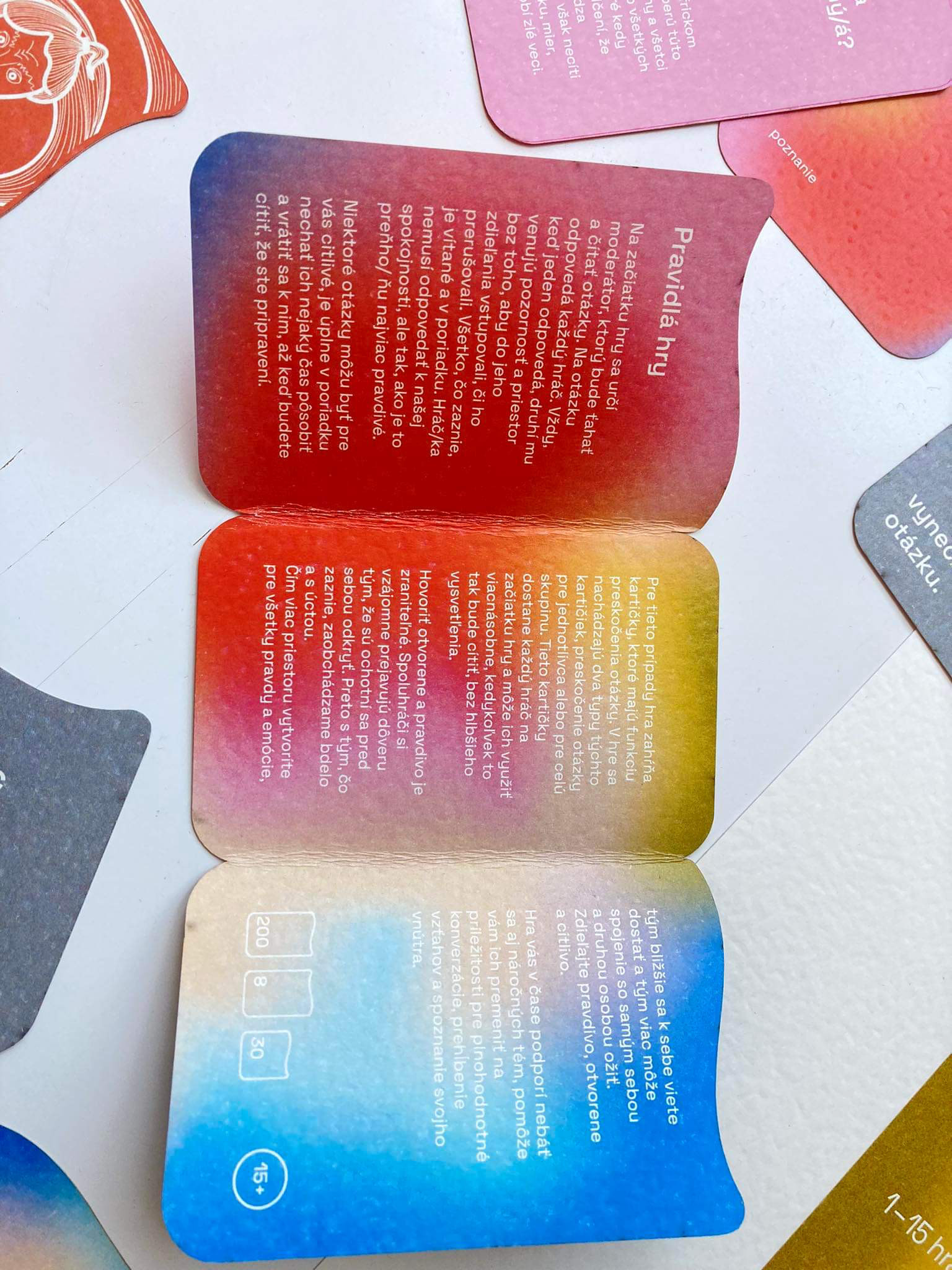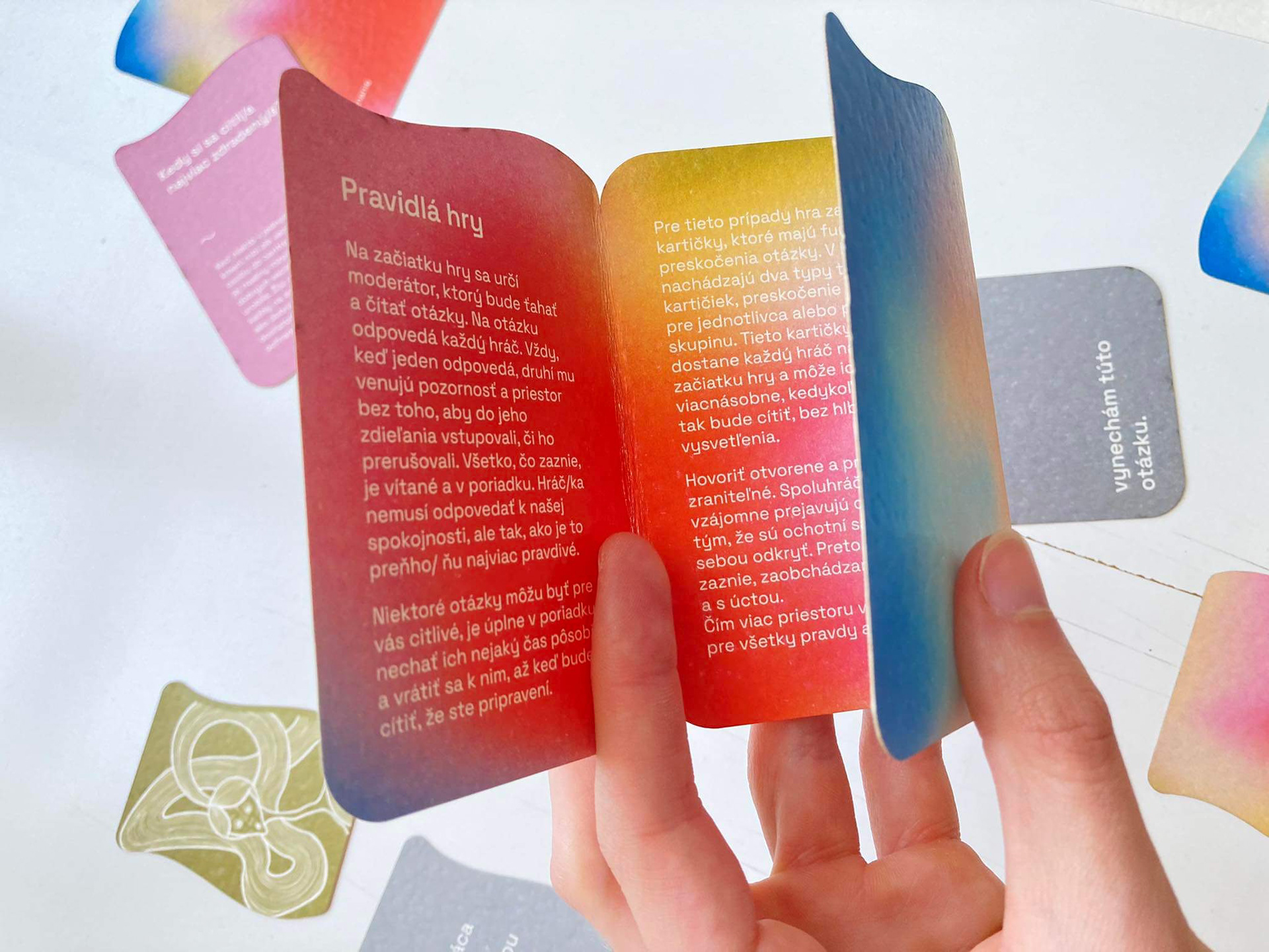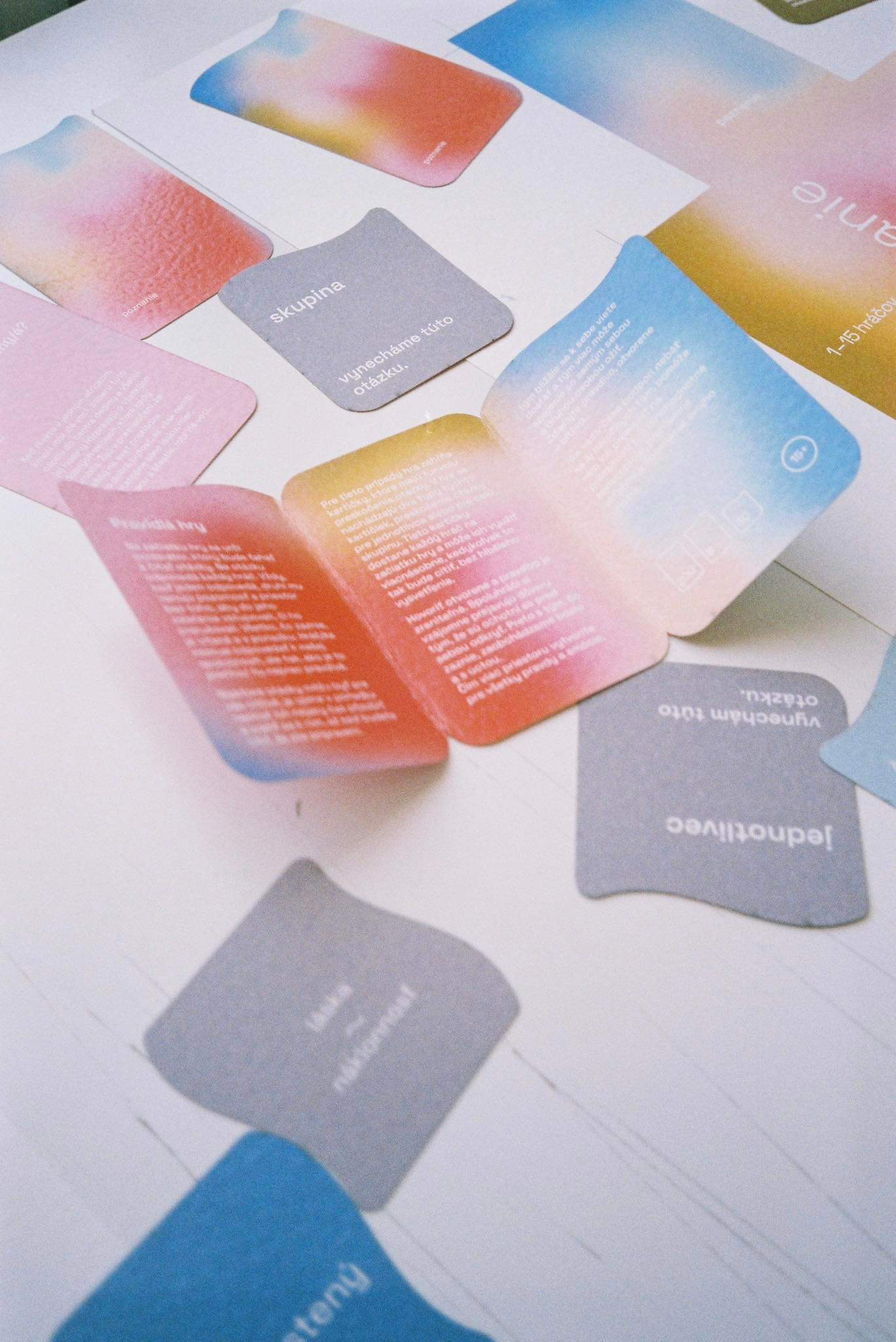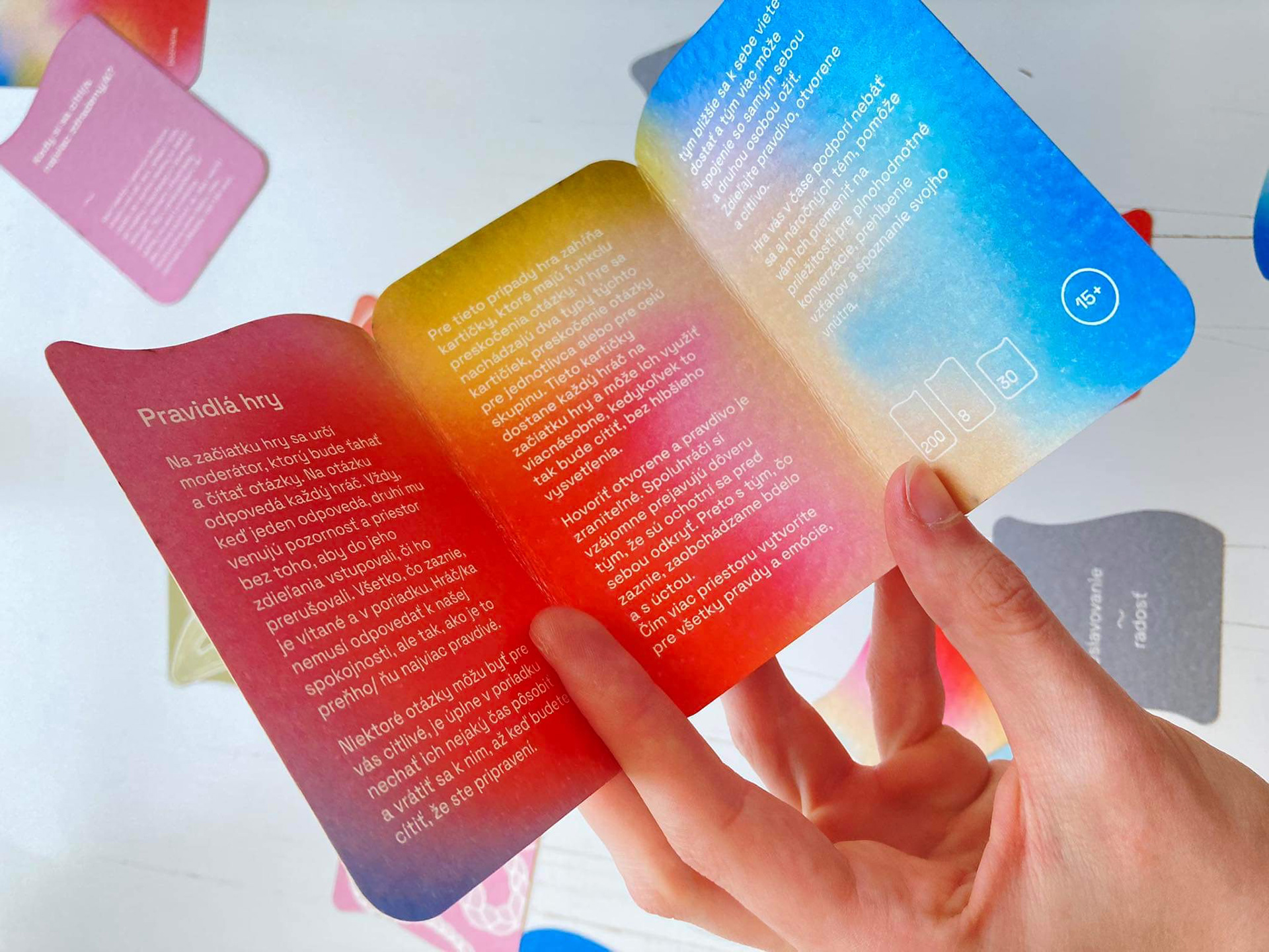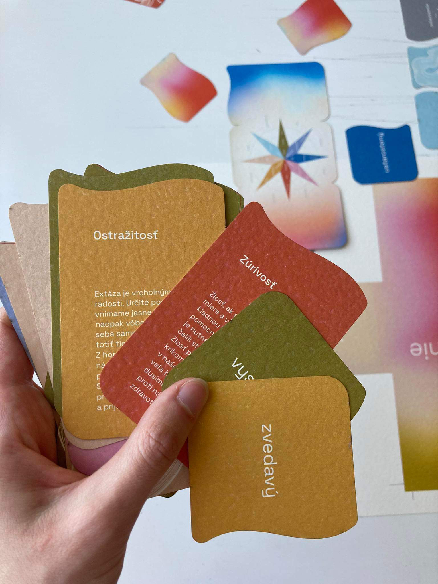 The first assignment of our end of year project was to design a game. It could be a board game or a card game, whichever. We decided to create a card game, where its focus would be on personal development and recognition - the recognition of one's self and their emotions. We made two versions - 8+ and 15+. In collaboration with: Valerie Virtová, Alice Weinfurtová, Natálie Búzková, Sára Julie Frajtová and Klára Záskalanová.